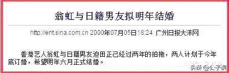 2000年,事业稳定下来的翁虹,突然宣布自己与迫田正己已经订婚,在台湾举办了一场盛大的订婚宴。