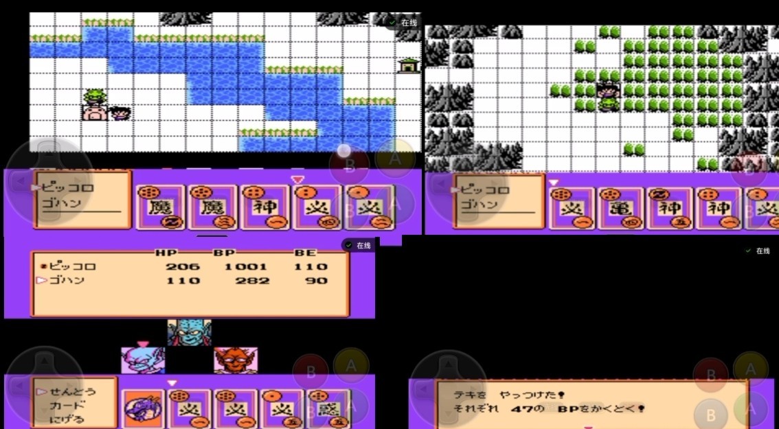 然后就进入比克跟悟饭找龙珠的环节,悟饭很弱,连小兵都打不过,一定要紧跟比克走,遇到怪就选防御高的牌自保。