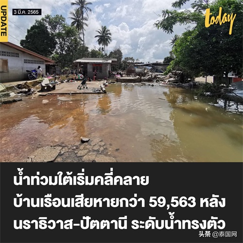 据泰国防灾减灾厅数据统计,2月25日至3月3日期间,洪灾对包括陶公、也拉、洛坤、博他仑、北大年、宋卡及董里府造成了影响,有44个县227个镇1122个村庄受洪灾影响,累计59,563户家庭受损。目前,陶公和北大年府仍受洪灾影响,其中陶公府已有3县14镇102村,累计3712户家庭受损;北大年府已有7县41镇162村,累计5707户家庭受损,但2府灾情现已逐渐缓解,当地水位逐渐下降,民众正查看损失并陆续恢复正常生活。