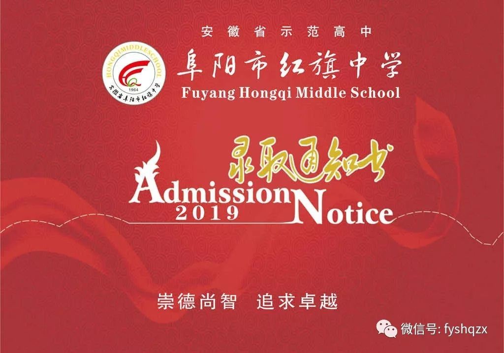 阜阳市红旗中学2019年高一新生录取名单