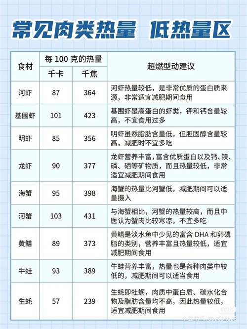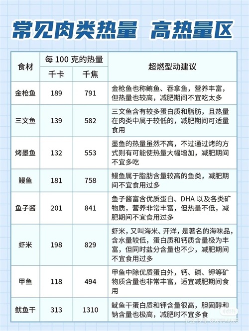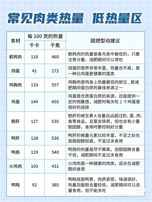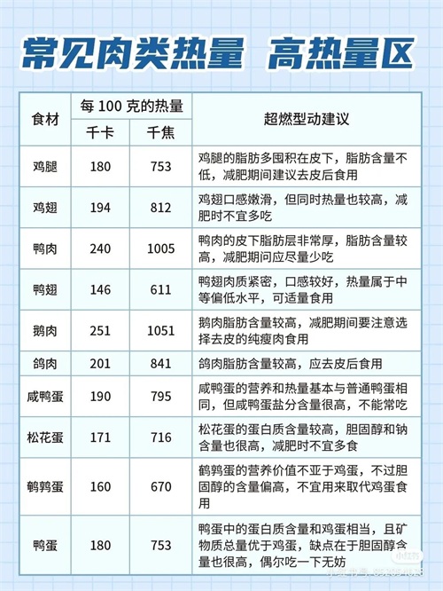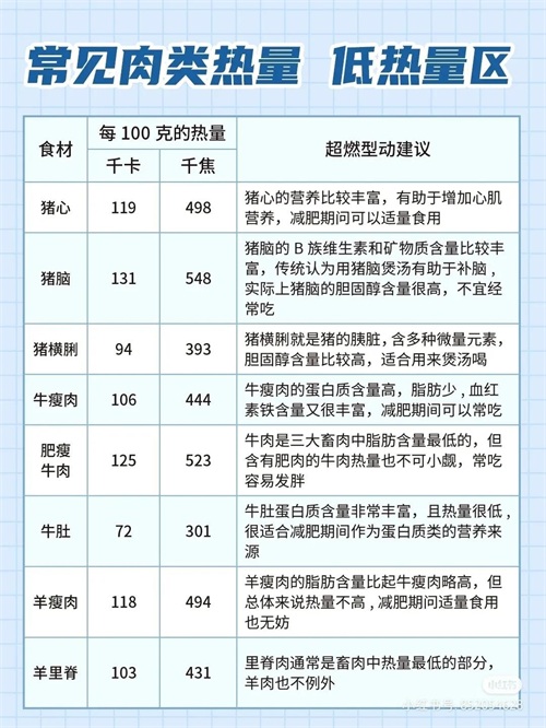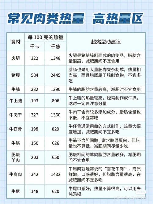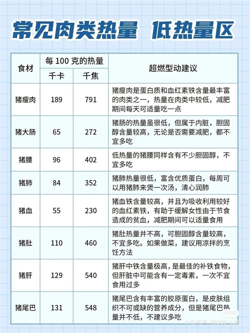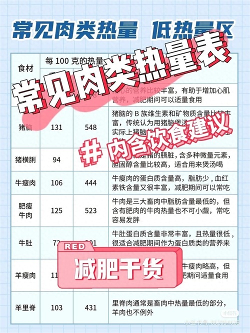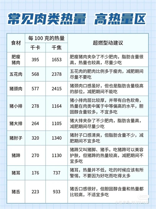 常见肉类食物热量表
