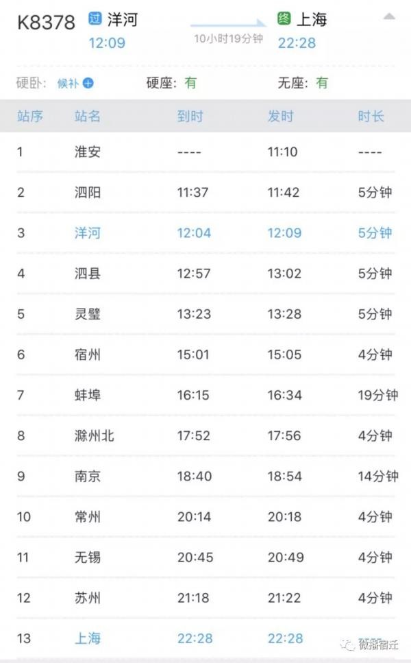 1月16日起,洋河站开通前往南京、无锡、苏州、上海火车