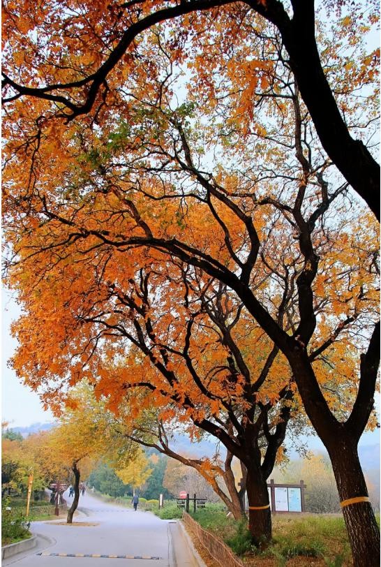 11月24日清晨,颐和园西门外的西郊线轨道两旁、香山路沿线,仿佛一幅天然的油画在眼前徐徐展开。