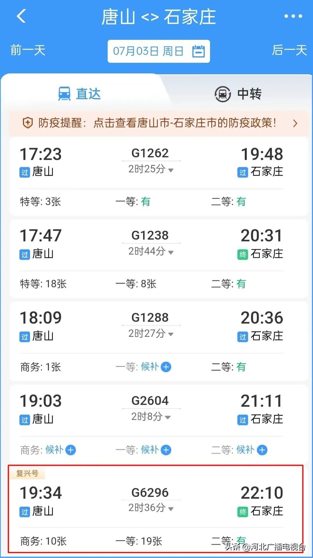 此外,原图定但并未开行的G6296次高铁列车目前已恢复开行,将唐山市高铁末班发往石家庄列车时间延后了31分钟,有效缓解了唐山市去往石家庄方向高铁(动车)运能饱和的情况。