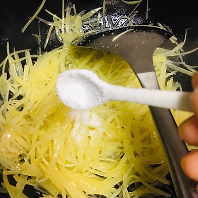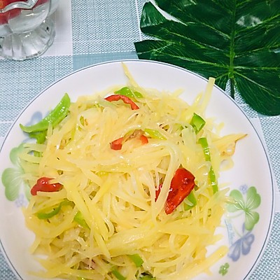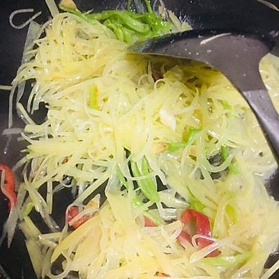 7、出锅装盘,一道酸辣开胃的土豆丝就做好了!