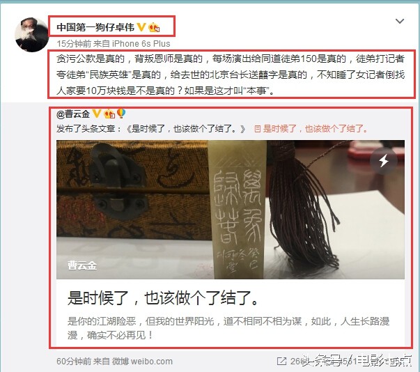 中国第一狗仔卓伟更新微博:指责讽刺大骂郭德纲,力挺曹云金!