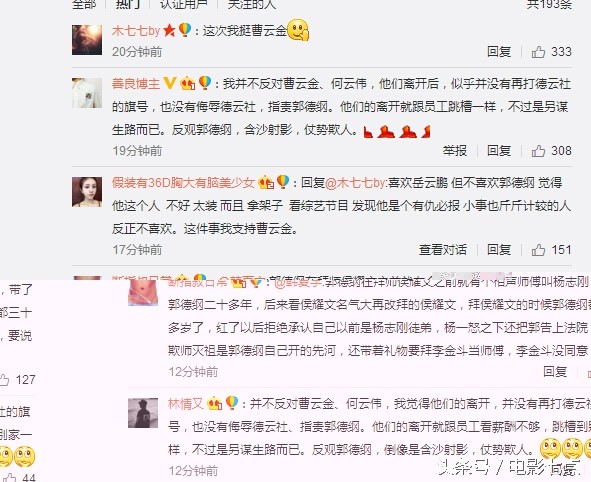 大部分网友看完后都开始支持曹云金了,他们认为:我并不反对曹云金、何云伟,他们离开后,似乎并没有再打德云社的旗号,也没有侮辱德云社,指责郭德纲。他们的离开就跟员工跳槽一样,不过是另谋生路而已。反观郭德纲,含沙射影,仗势欺人。