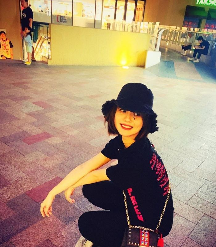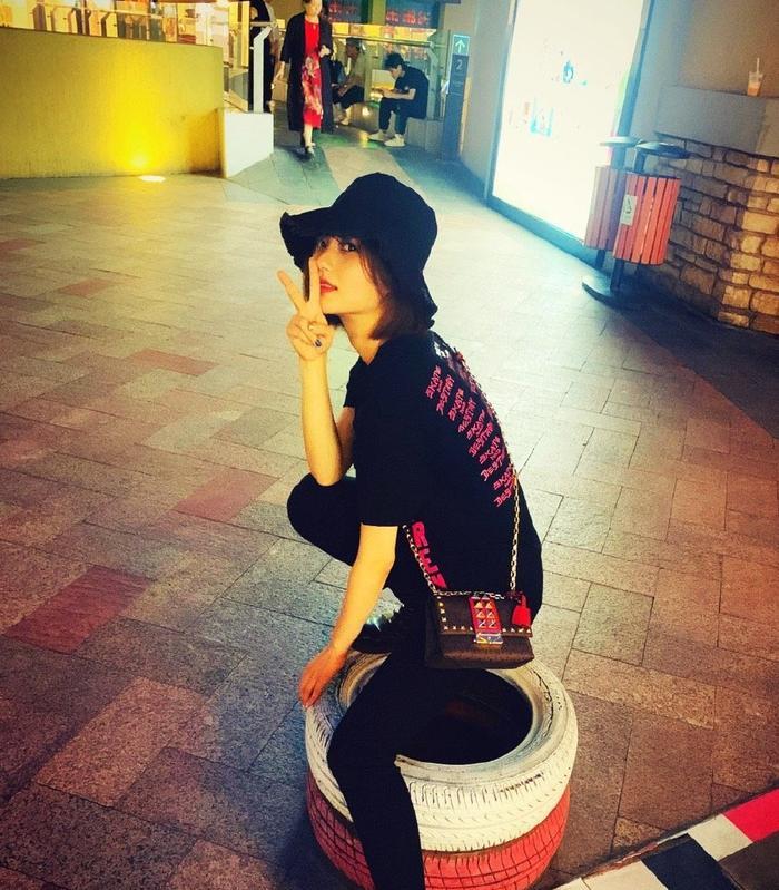 25岁姜珮瑶晒街拍,粉T配牛仔裤少女感爆棚,“孙亚亚”笑容真甜!在姜珮瑶晒出的街拍照中,并不是只有少女系的穿搭,比如在这张照片中,25岁的她身穿一件黑色T恤搭配黑裤子,T恤上红色的字母将纯黑的造型点亮了,尤其是背着的黑色包包上有金属铆钉和金色链子作为配饰,看起来个性十足。