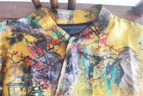 香云纱,尤其是姆米数高的,因为它的特殊加工工艺,是中国的非物质文化遗产,可以自动净化我们身体的水分汗液,被称为“软黄金”,多穿少洗,经过岁月沉淀,洗护的好,它会在我们日常生活中,经过我们的穿着,在我们身上变成老料,油亮丝滑,一看就是高货极品。