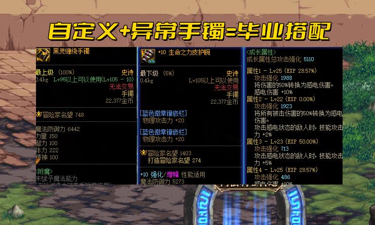 并不是所有自定义史诗都能佩戴,一般使用率最高的也就是上衣和左槽,而这两个部位刚好都和异常流挂钩,再加上特有的4种异常流手镯,【自定义上衣/左槽+异常手镯】,就是接下来一段时间的模板了。