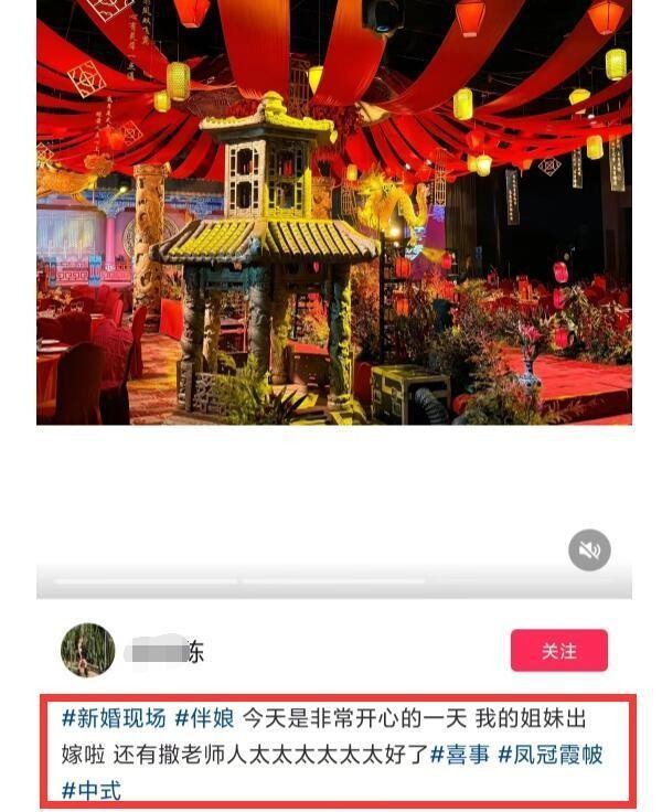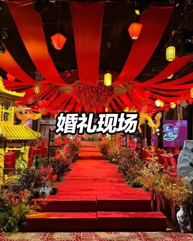 可以看到现场的布置非常有古风,完全按照宋朝的婚礼仪式来的。嘿,听我说,这里有个伴娘在网上晒婚礼照片。她说: