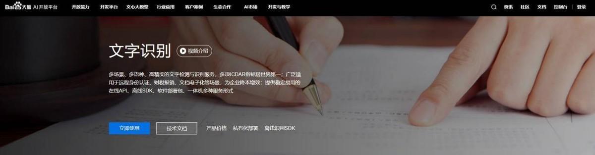 1. 打开百度OCR官网,创建账号并登录。