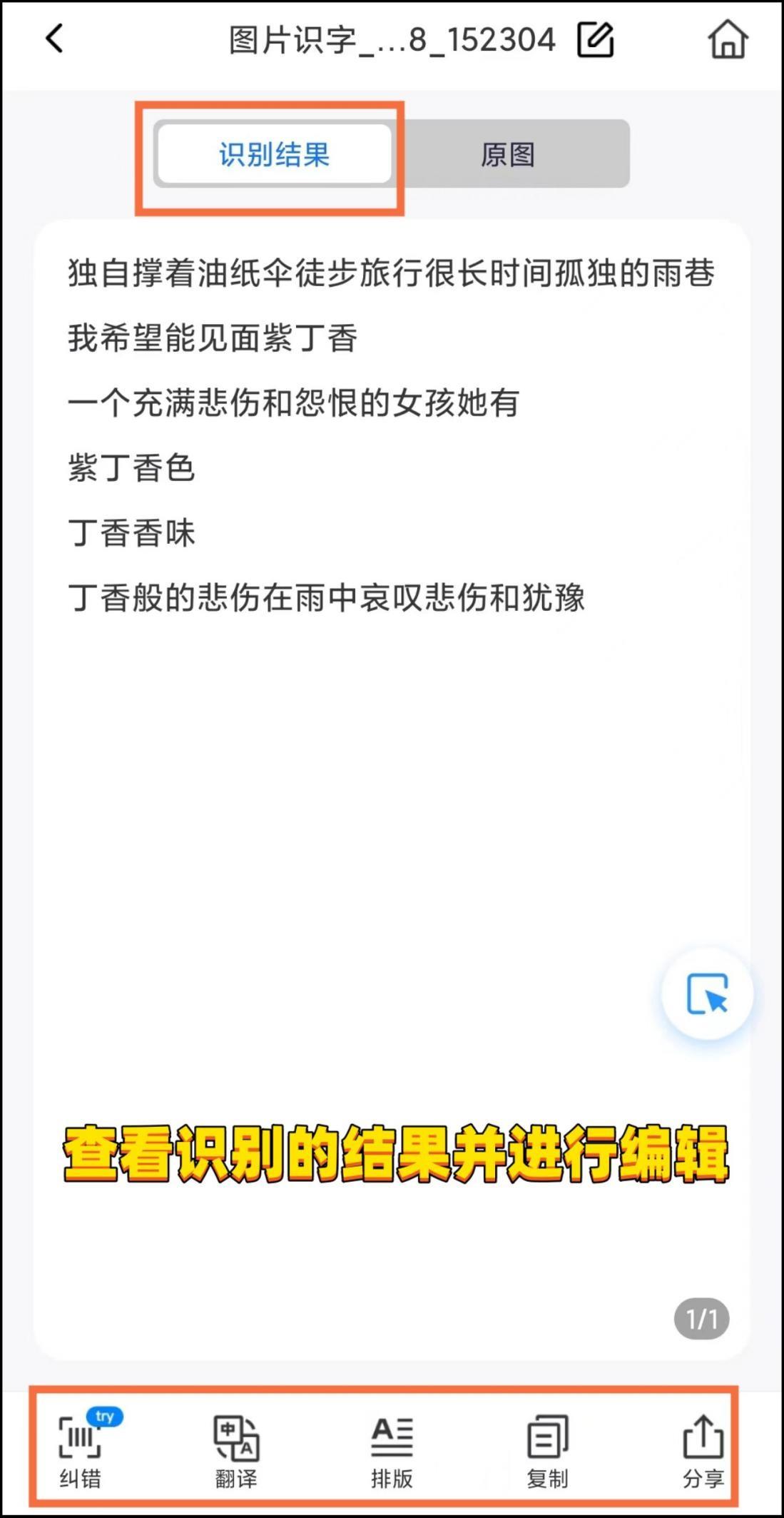 4. 等待识别完成,即可看到图片中的文字内容。