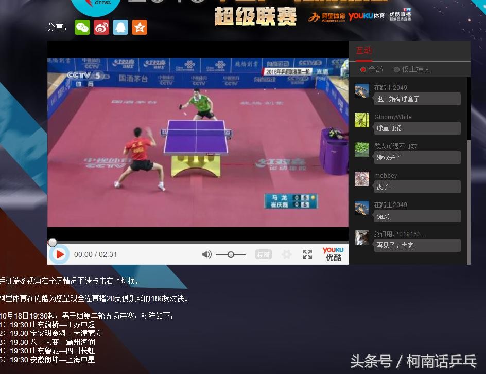 球迷的福音:乒超全部比赛均有直播(附观看方法)