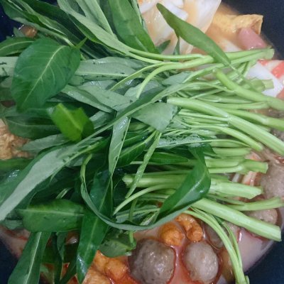 7、加入耐煮食材(丸子、豆制品、土豆、莴笋…)大火煮熟