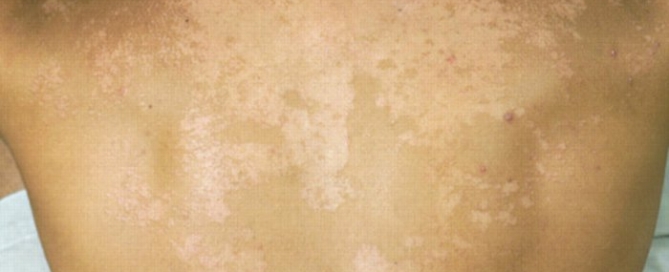 至从某一年夏天,身上长了这种一块块的汗斑,到现在每年夏天都会复发。