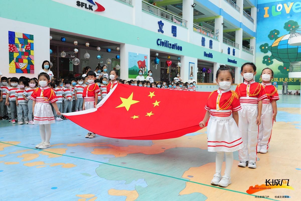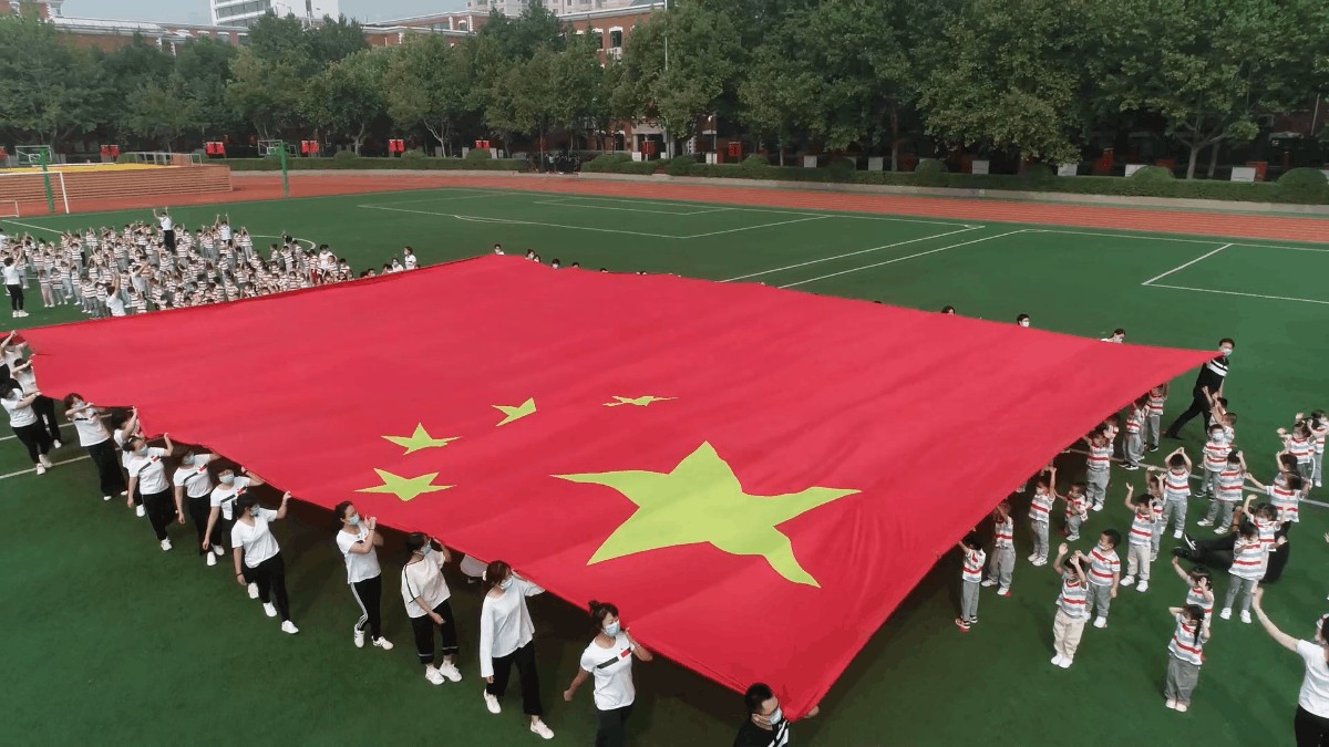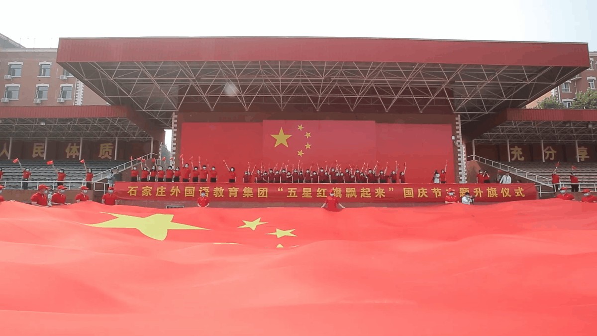 国庆节前夕,石家庄外国语教育集团组织幼儿园、小学、初中、高中12000余名师生开展“五星红旗飘起来”活动,预祝祖国“生日快乐”!
