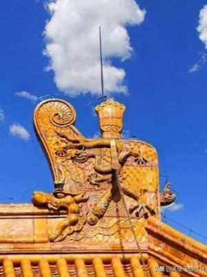 吞兽又叫〝龙吻〞,正嵴两端各有一只,故宫屋顶上的神兽叫什么兽。它是用十三块中空的黄彩琉璃瓦件拼成的,匠人称为〝十三拼〞。传说它有喷浪降雨之神技,却被仙人用剑镇在殿嵴之上,不能逃跑,只得老老实实地〝站岗〞。