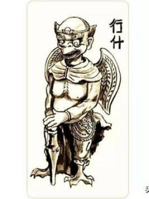行什(hánɡshí):雷神的化身,尖嘴猴腮,背生双翼,手持金刚杵,能降笔画魔驱妖,防雷防火,故宫屋顶上的神兽数量。是一种带翅膀猴面孔的人像,它,只在太和殿出现,是举世无双的第十只角兽,因为排行第十,就叫它行什。清代人说是猴子,但是它有翅膀,手拿金刚宝杵,会降魔。是传说中雷震子的化身。