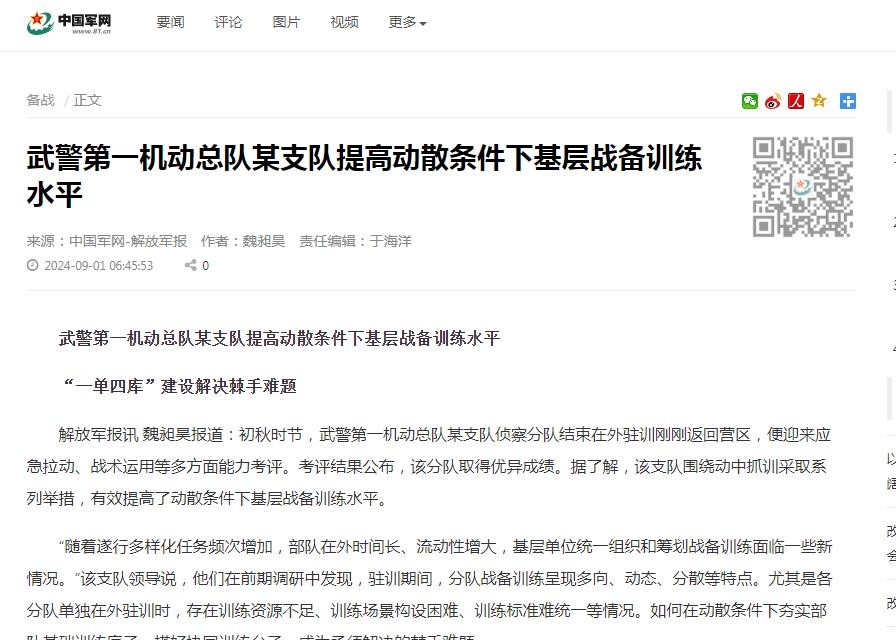 中国军网,武警第一机动总队某支队提高动散条件下基层战备训练水平
