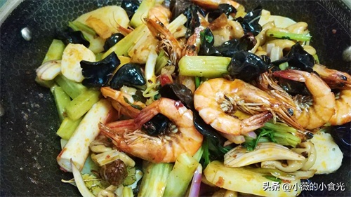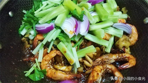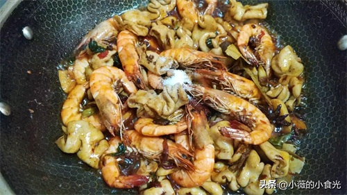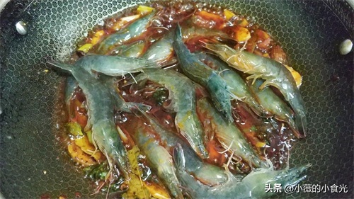 放入大虾炒3分钟