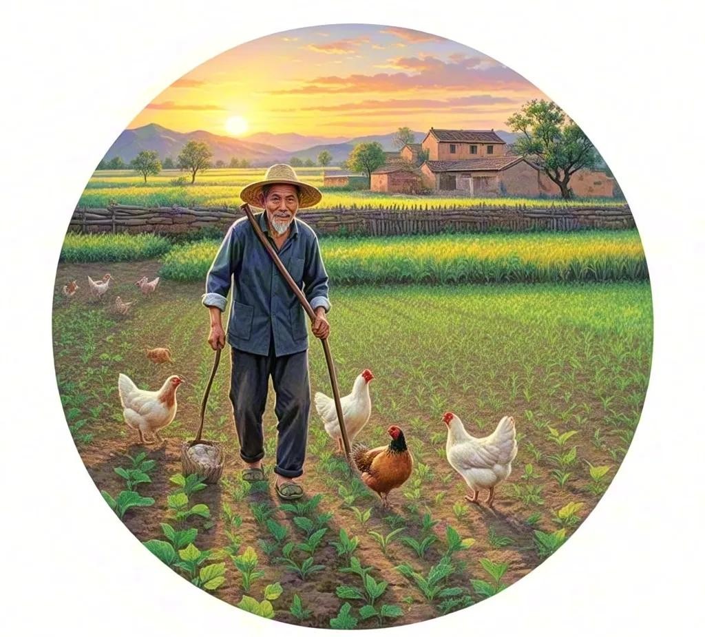 颔联“野老念牧童,倚杖候荊扉”,通过“野老”(乡村老人)和“牧童”(放牛放羊的孩子)两个角色,进一步描绘了田园生活的细节。老人思念着放牧归来的孩子,拄着拐杖在柴门前等候,这一画面充满了温情与亲情,展现了田园生活的质朴与美好。