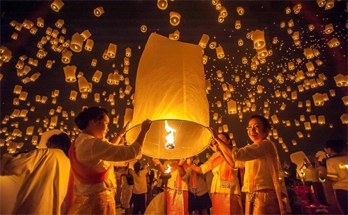 2、泰国人热衷于用天灯祈福,清迈有非常壮观的天灯节。其实想感受天灯、水灯盛景,在我们云南西双版纳也一样。看过《航拍中国》的应该知道,云南之美;白天疯狂泼水节、晚上静祈天灯愿。