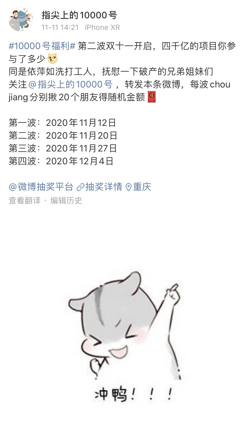 另外,“指尖上的10000号”微博还有两波现金福利,快来!