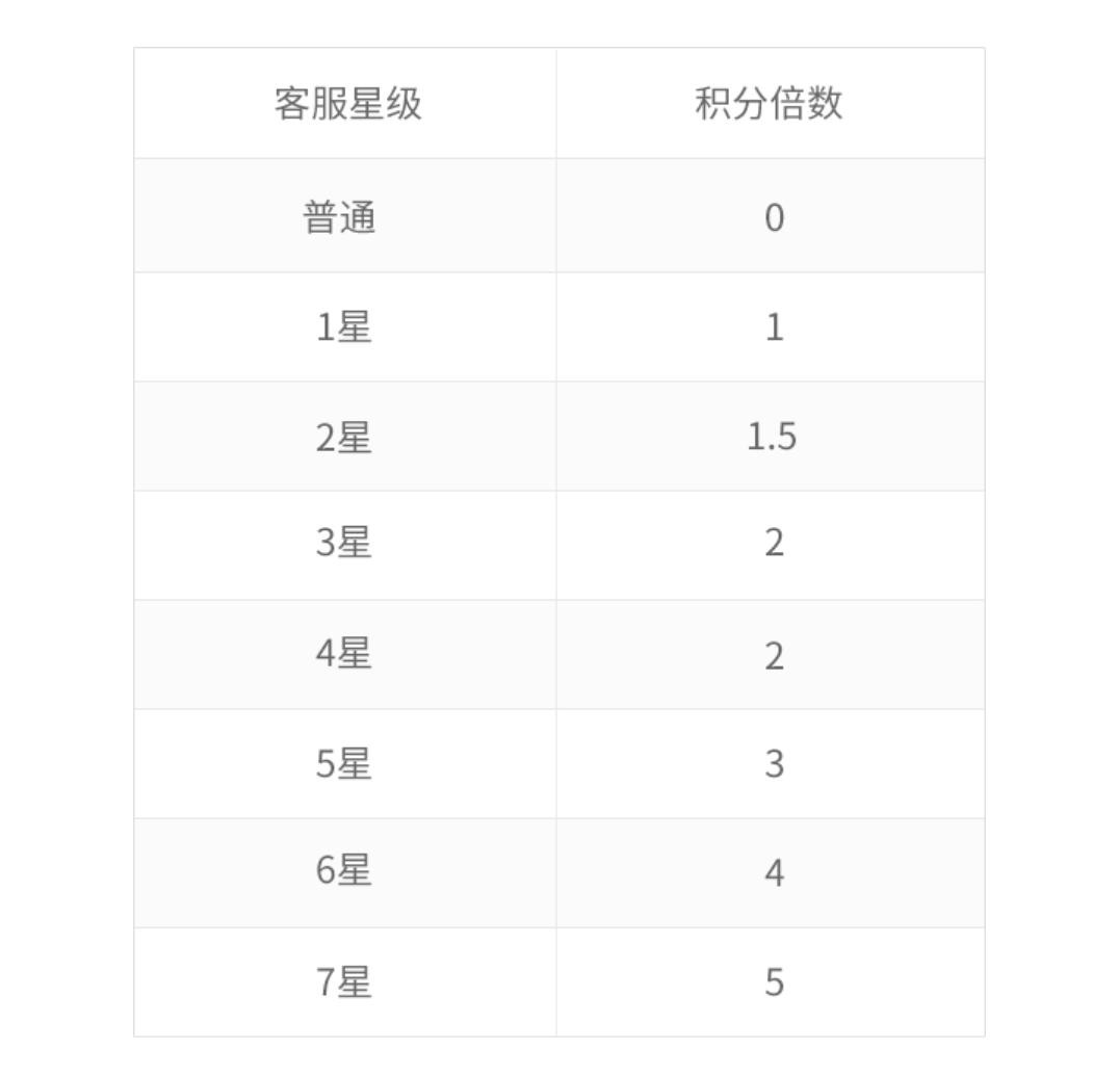 电信用户分为普通用户、1星、2星......7星,每个等级都对应一个积分倍数。