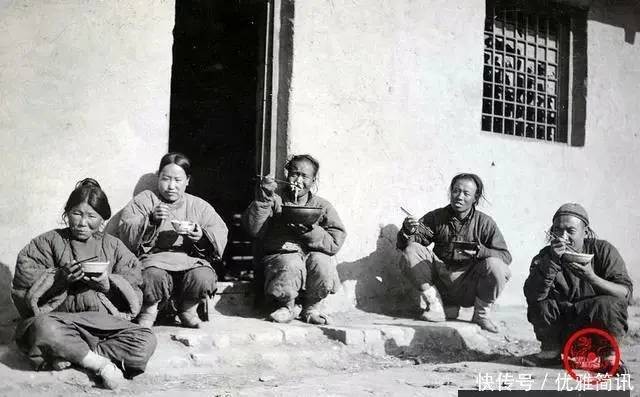 1909年7月,承德围场的村民在吃午饭。英国人威廉·珀道姆摄。