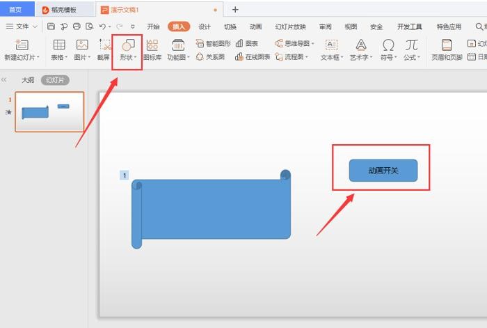 插入圆角矩形,添加文字“动画开关”: