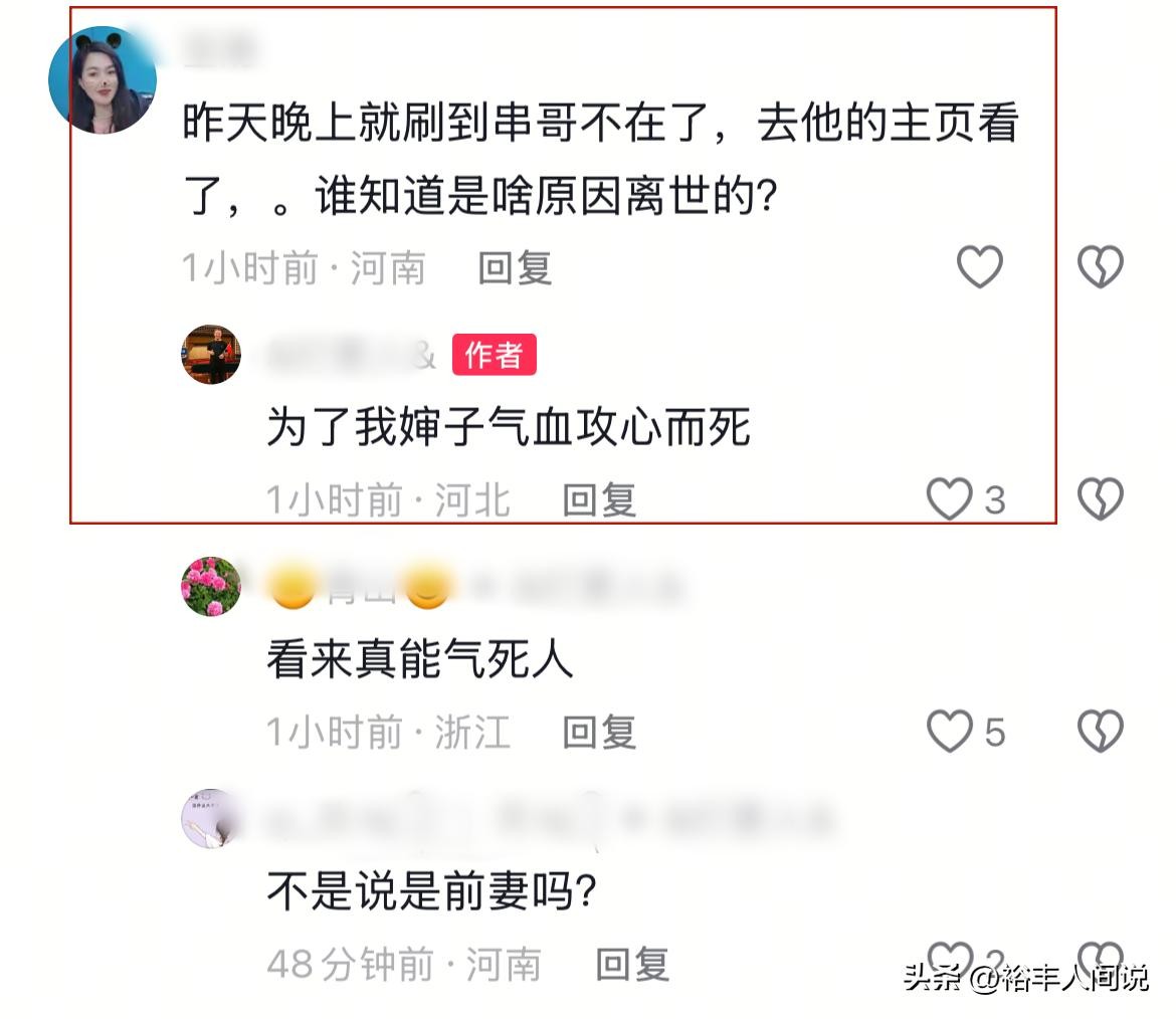4月21号晚,诸多来自河南林州的网友分享悲痛消息,当地颇具知名度的网友“串哥”不幸去世,年仅39岁。由于这一消息太突然,以至于很多粉丝认为这一噩耗是调侃,但随后曝出的证据让人不得不相信。