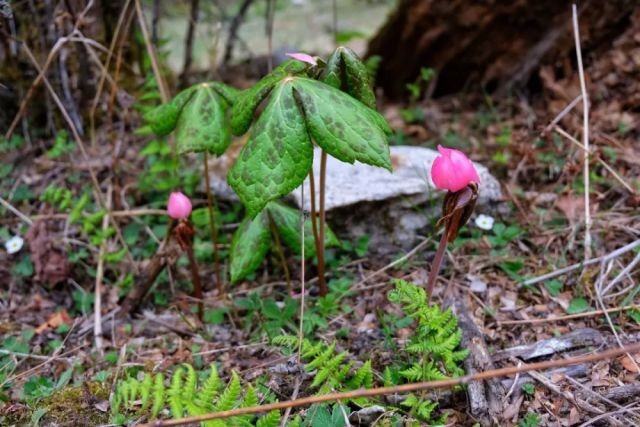 桃儿七根状茎粗短,节状,多须根。