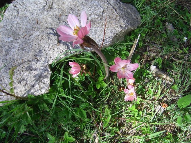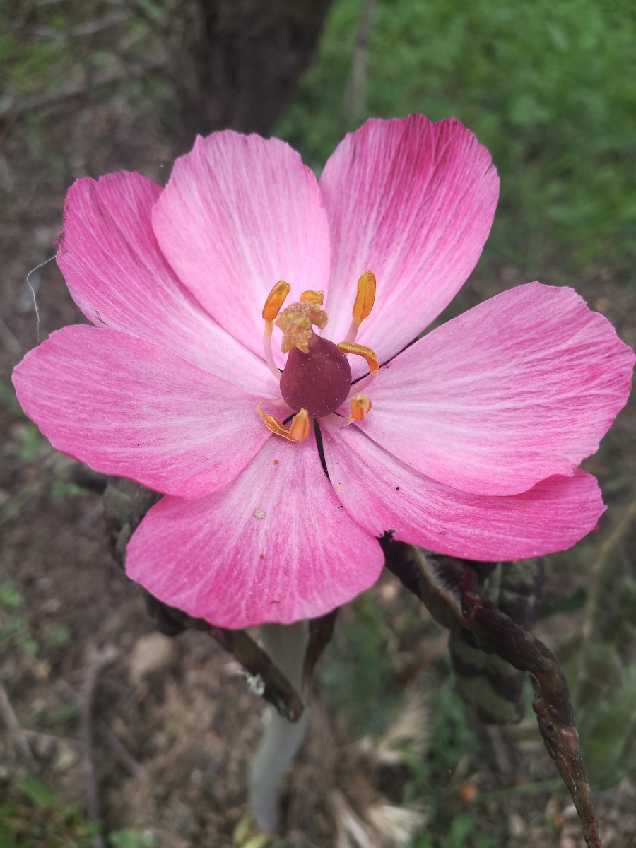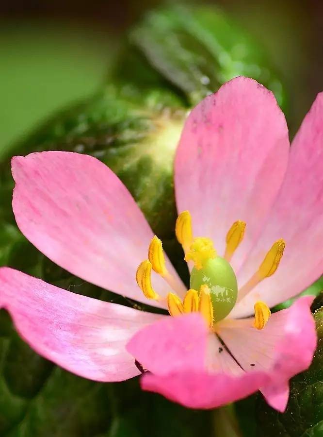 桃儿七花大,单生,先叶开放,两性,整齐,粉红色;萼片6,早萎;花瓣6,倒卵形或倒卵状长圆形,长2.5-3.5厘米,宽1.5-1.8厘米,先端略呈波状;雄蕊6,长约1.5厘米,花丝较花药稍短,花药线形,纵裂,先端圆钝,药隔不延伸;雌蕊1,长约1.2厘米,子房椭圆形,1室,侧膜胎座,含多数胚珠,花柱短,柱头头状。