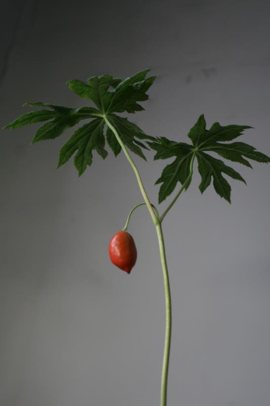 桃儿七浆果卵圆形,长4-7厘米,直径2.5-4厘米,熟时桔红色;种子卵状三角形,红褐色,无肉质假种皮。