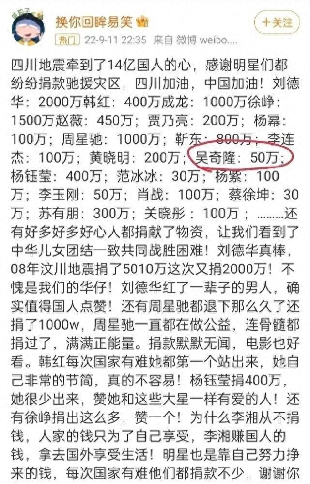 更引人瞩目的是,有报道称吴奇隆和刘诗诗在公益捐款上出现了分歧。