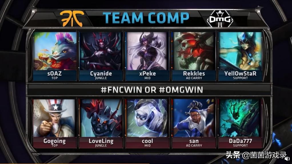 首先,这场比赛至关重要,OMG需要赢下这场比赛才可以保留小组赛出线的希望,而FNC也是如此,希望战胜OMG以保留自己小组出线的希望。这场比赛拥有十分多熟悉的面孔,包括FNC上单sOAZ(嫂子)、欧洲老法王xPeke、“欧洲高学成”Rekkles以及YellOwStaR,都是LPL粉丝熟悉的欧洲职业选手。而OMG这边,大就不用介绍了,值得一提的是,辅助不是柚子,而是达达7作为首发。