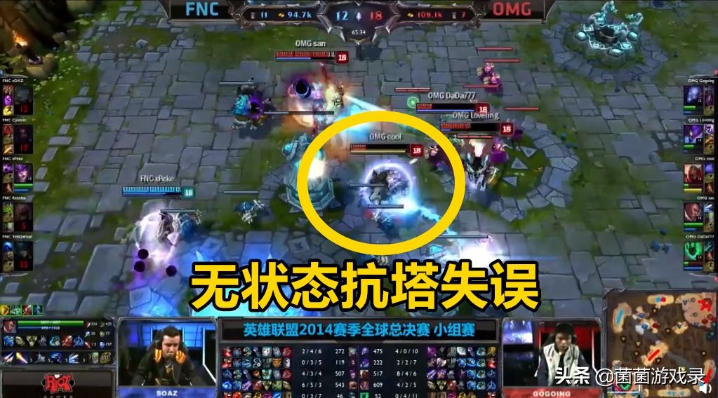 但是现在回顾这场比赛,确实有很多做得不好的地方。其中65分钟的时候,OMG打赢了团战,对方仅剩辛德拉,而OMG全员存活,这种情况放在现在,早就已经推掉了,为什么OMG没有推进呢?因为在推进中,无状态因为抗塔失误,被塔击杀了,导致OMG这边缺少了一个突进,辛德拉可以安心地守塔,最终OMG撤退。