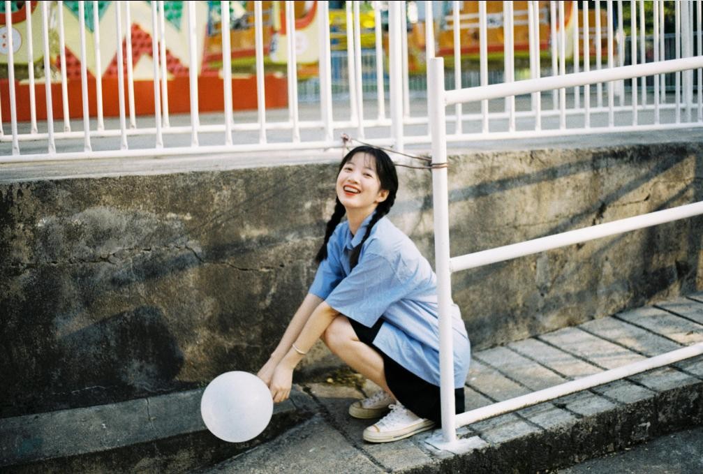 越是随意的姿势拍出来的效果就越自然不尴尬,大家可以自然地蹲下拍,手里拿个气球,开心的笑,很有日系小清新感,很适合娇小的女生。