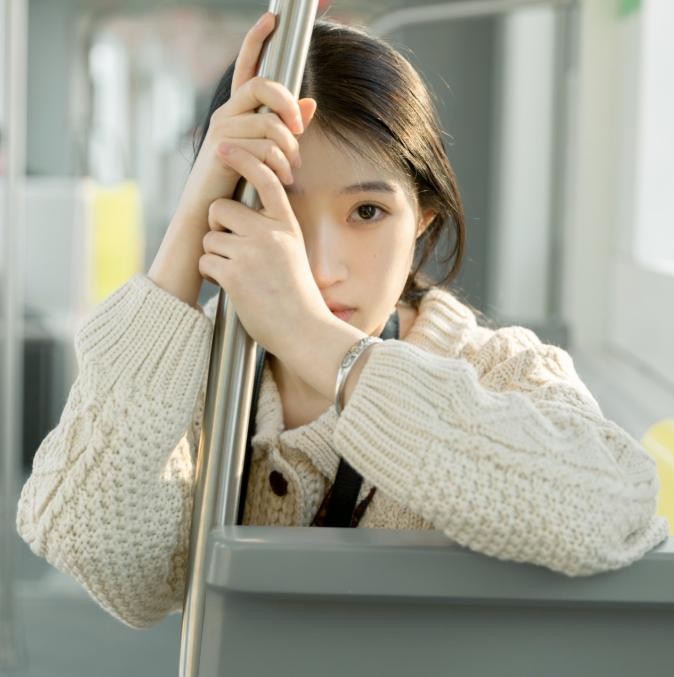 拍腻了全脸照那就拍个不一样的半边照吧,比如在公交地铁上就可以借助把手来遮脸,这个姿势技巧会更显瘦也多了点文艺神秘感。
