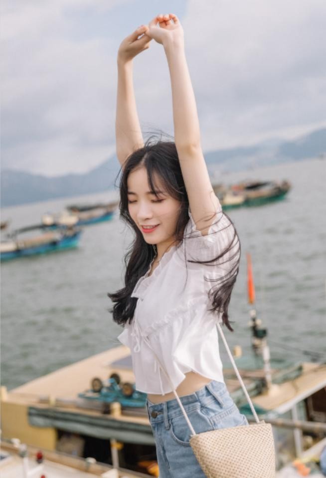 如果大家是在海边拍照,一定试试回眸这个姿势,微风吹乱发丝,来个不经意的回眸给摄影师抓拍,温柔很有意境。