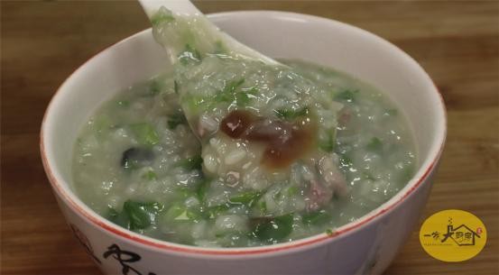 【原料】:皮蛋、瘦肉、食盐、料酒、鸡精、蚝油、青菜、大米