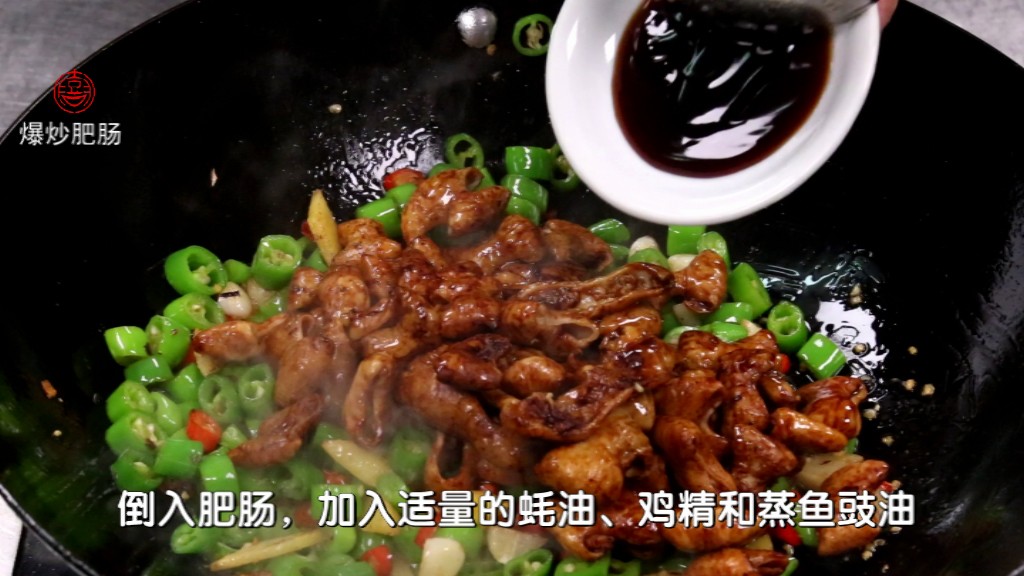 10分钟搞定没有异味,香气十足的“青椒爆肥肠”