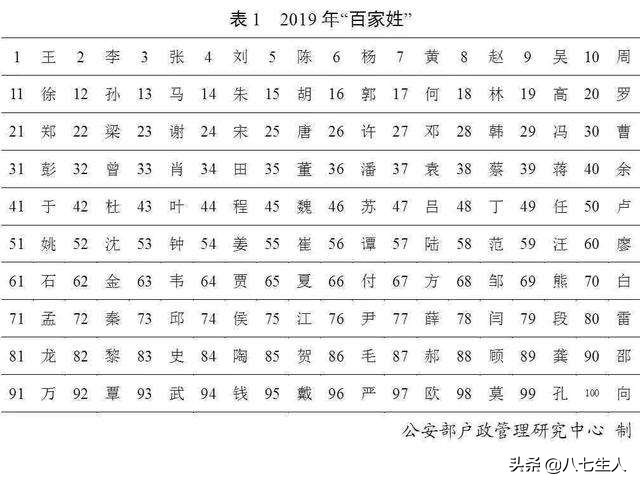 按户籍人口数量排名,2019年的“百家姓”与2018年相比略有变化。