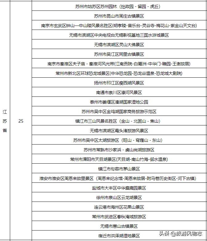 我国旅游资源丰富,各个省份都有代表性景点,比如山东的泰山、河南的少林寺、湖北的黄鹤楼等等。不过,要说国家AAAAA级旅游景区的数量,那江苏省可遥遥领先,排名全国第一,数量高达25家5A级旅游景区,不知道你去过几个?
