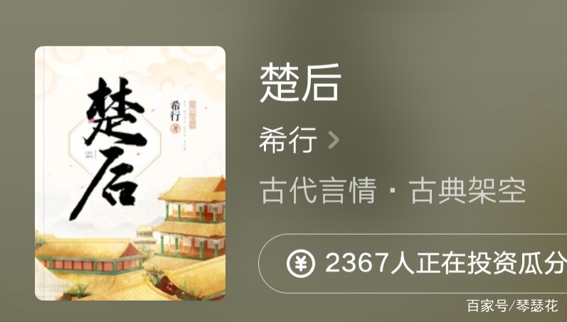 所以今天花姐要来为大家推荐希行的两本书。一部呢,是她的经典老书《第一侯》,目前已完结。喜欢看完本的朋友,可以去看看。一部呢,是希行最新连载书《楚后》。目前新书才刚刚开头,就已经是悬念十足。不介意追书的朋友,可以入手。