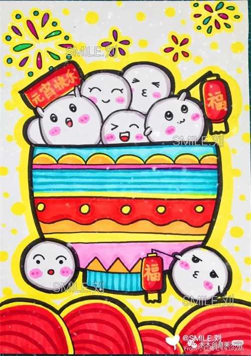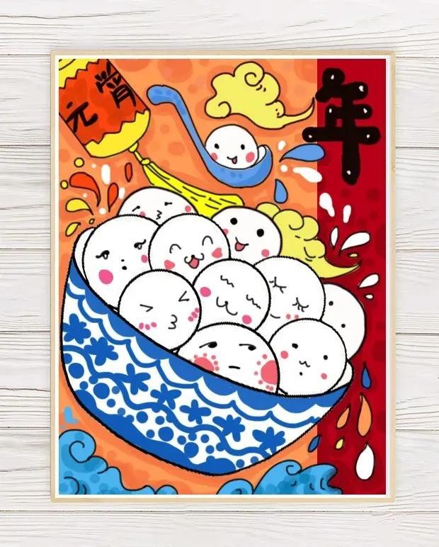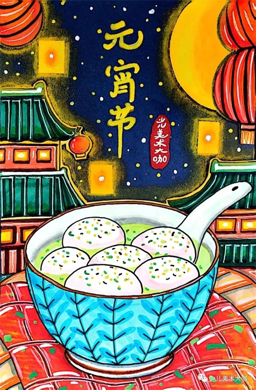 元宵节20张主题创意绘画大合集!闹元宵、赏花灯,团团圆圆过元宵