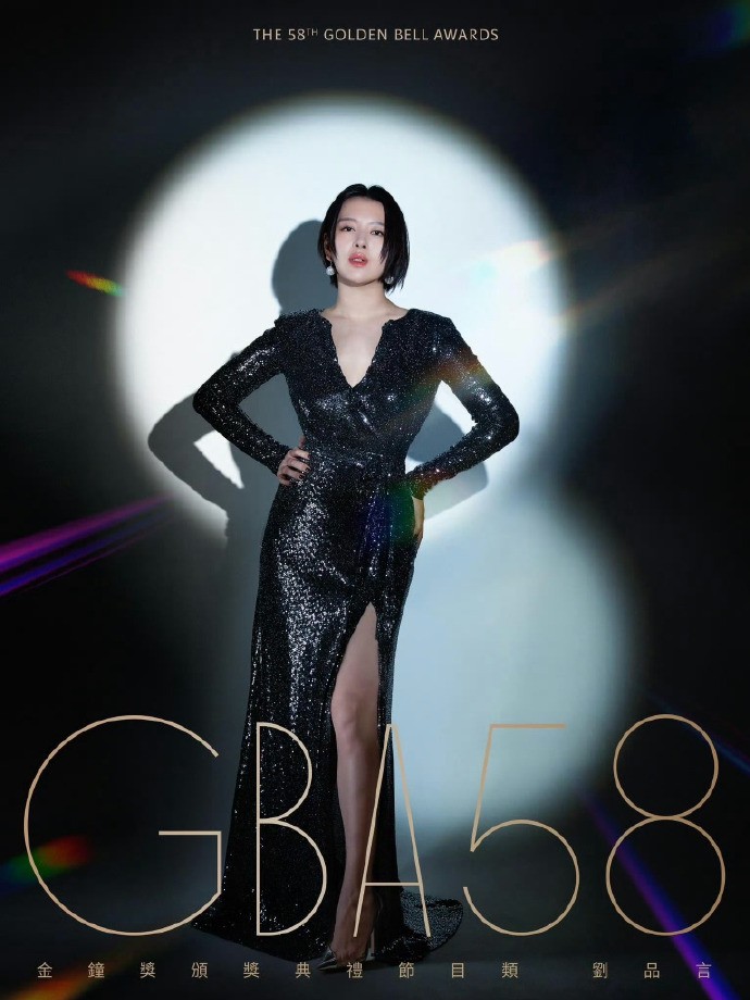 刘品言当天发布了主持人写真,她一袭黑色深V长裙,露出自己的事业线,修长的大美腿,曼妙身材尽显无遗,绝对性感撩人!期待刘品言在金钟奖上的精彩主持,她还是很有魅力的!