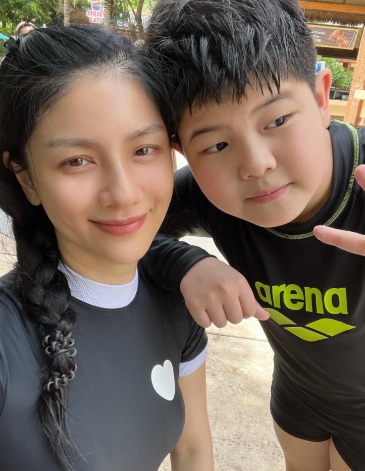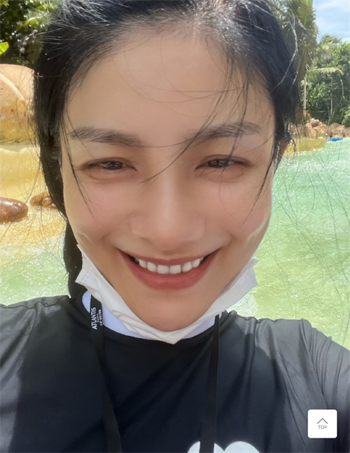 还有一张,可以看出她们一家应该在水上乐园玩耍,她穿的是泳衣,她的状态完全不像是生过两个孩子的女人,非常的年轻,保养的也太好了吧,完全不像是46岁的女人。
