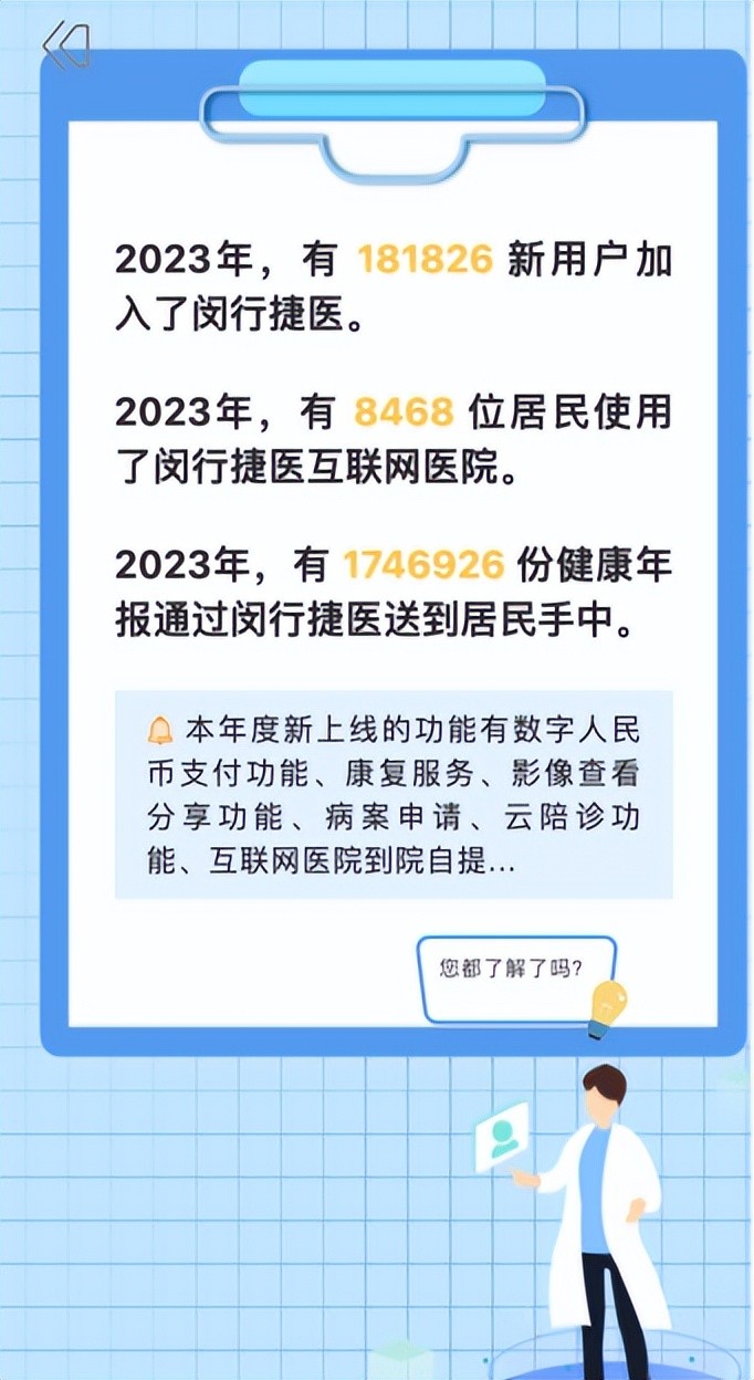 看看2023年有多少新朋友加入了“闵行捷医”、使用了互联网医院在线就诊功能。